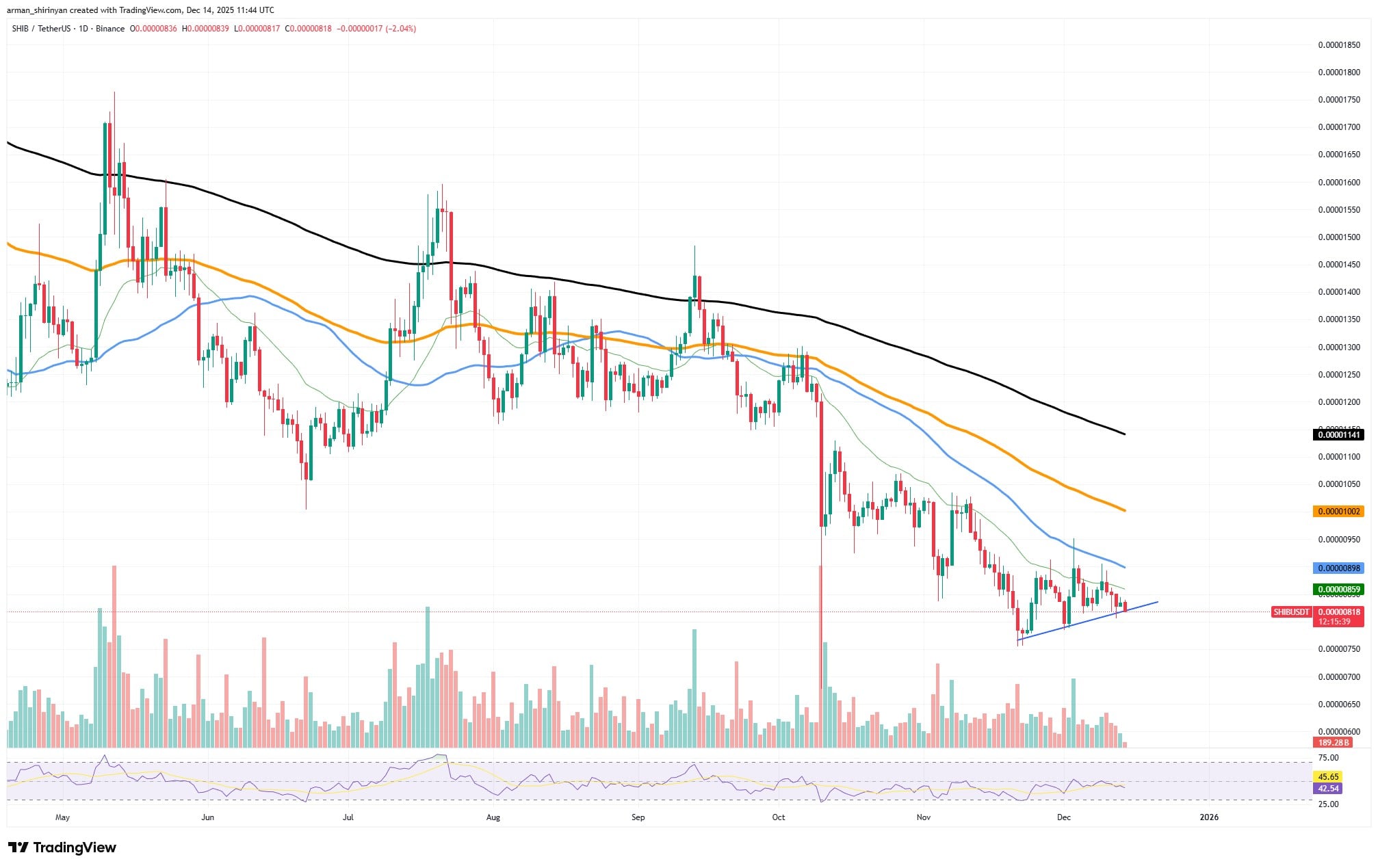 차트에 따르면 SHIB는 여전히 모든 중요한 선 아래에 있습니다. 이는 실수로 좋아하는 사람의 엄마 이름을 부른 후 데이트를 시도하는 것과 같습니다. 이는 이상적이지 않습니다. 랠리를 시도할 때마다 판매자는 이를 종료합니다. 무례한.